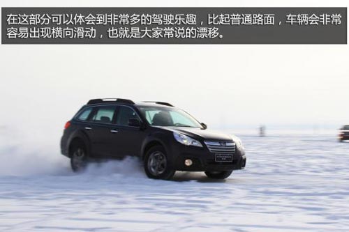 第一部分主要是讓大家對冰雪駕駛進(jìn)行簡單的熟悉,以低速駕駛為主,更多的是為了熟悉車輛的性能。試駕的路面主要以壓實(shí)的雪地為主,這應(yīng)該是冰雪駕駛中抓地力最好的路面了。慢慢起步,感到和普通柏油路面的差距并不是非常明顯,這里主要有兩個(gè)原因,一是雪地胎的使用,二是由于氣溫低,雪凍得非常結(jié)實(shí)。
