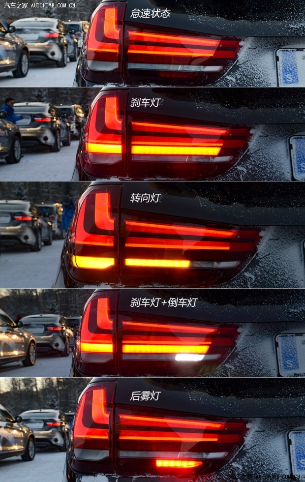 車尾最出彩的設計來自尾燈,寬扁的LED燈帶點亮之后很醒目,跟前大燈一樣,我也拍攝了各個燈光的效果,大家感受一下,不過在這里還是要跟大家表示歉意,試駕活動上氣溫較低,也是大雪天氣,車身外觀不能保持干凈,圖片質量欠佳,請見諒。