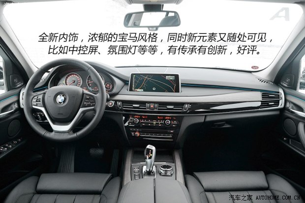 全新內飾設計乍看似曾相識,保留了濃郁的寶馬風格,繼續觀察發現新元素隨處可見,同時幾道主線條的流暢感也比現款好不少,突出視覺上的延展性,整體效果更顯豪華。人們一直認為內飾部分是寶馬的軟肋,這回新一代X5的表現有了一定提升,好評。