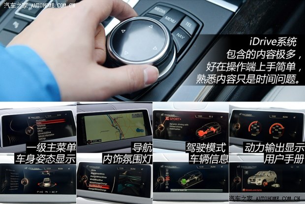 iDrive系統跟大屏幕一起結合著用,用戶體驗很到位。試駕車的iDrive系統包含大量信息,每個菜單下都分支出子菜單,子菜單又有子菜單,把它熟悉透了真得花點時間,好在旋鈕的操作方式清晰易懂,上手無難度。