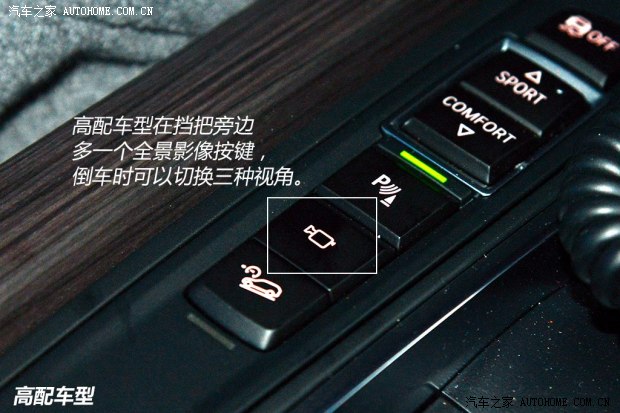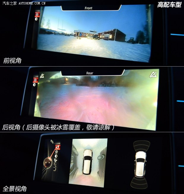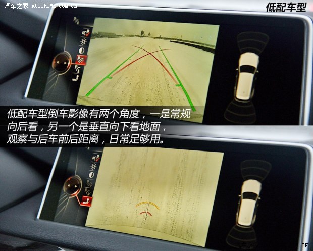 試駕會現場車輛配置情況有差異,我們這輛車是低配版,倒車影像有兩個角度可選,一是常規向后看,二是垂直向下看,日常用肯定夠,另有高配車輛裝備全景攝像頭,倒車時三個角度可選:前視角、后視角、全景視角。