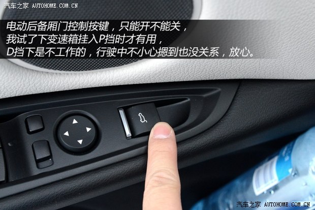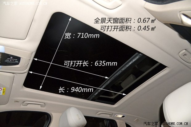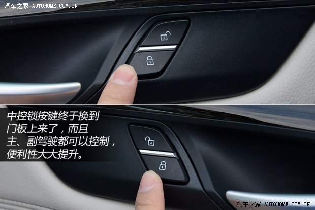 其他跟乘坐相關的信息點都在上面圖片中列出,新一代X5把中控鎖按鍵從傳統的中控面板位置移到門板側面,考慮到到多數人的使用習慣,便利性提升;車鑰匙造型別致很漂亮,終于不再是四四方方的造型;全景天窗面積0.67㎡,可打開部分也有0.45㎡,還不錯。