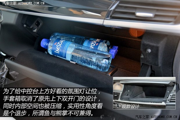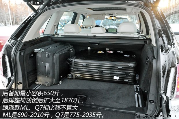 儲物空間有喜有憂,前后門板的儲物槽容量都非常大,不過駕駛員能隨手放東西的儲物空間不多,另外后備廂空間與同級別的奔馳ML和奧迪Q7相比都偏小。從乘坐和儲物兩方面整體看,新一代X5在車廂內部空間方面沒能建立起明顯優勢。
