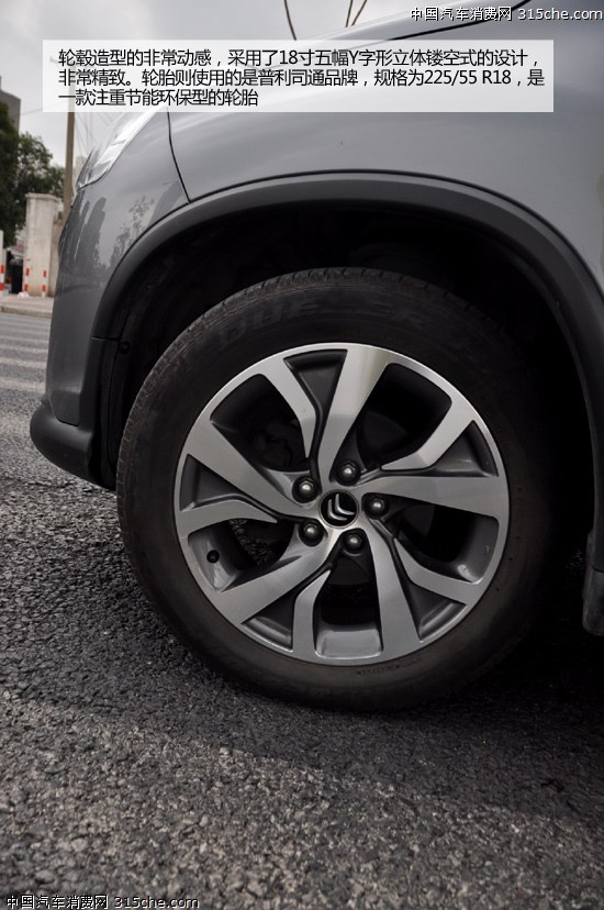 輪轂造型的非常動感,采用了18寸五幅Y字形立體鏤空式的設(shè)計,非常精致。輪胎則使用的是普利司通品牌,規(guī)格為225/55R18,是一款注重節(jié)能環(huán)保型的輪胎。