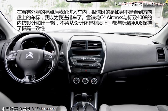 在看完外觀的亮點后我們進入車內(nèi),很驚訝的是如果不是看到方向盤上的車標(biāo),我以為我進錯車了。雪鐵龍C4Aircross與標(biāo)致4008的內(nèi)飾設(shè)計如出一轍,不管從設(shè)計還是材質(zhì)上,都與標(biāo)致4008保持了極高一致性。
