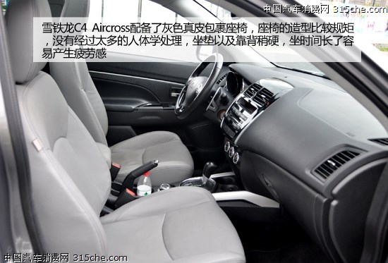 雪鐵龍C4Aircross配備了灰色真皮包裹座椅,座椅的造型比較規(guī)矩,沒有經(jīng)過太多的人體學(xué)處理,坐墊以及靠背稍硬,坐時間長了容易產(chǎn)生疲勞感。靠近手剎的地方我們看到了座椅加熱功能按鍵,有了它在冬天的時候多少會給駕駛者帶來一絲暖意,實用性比較強。