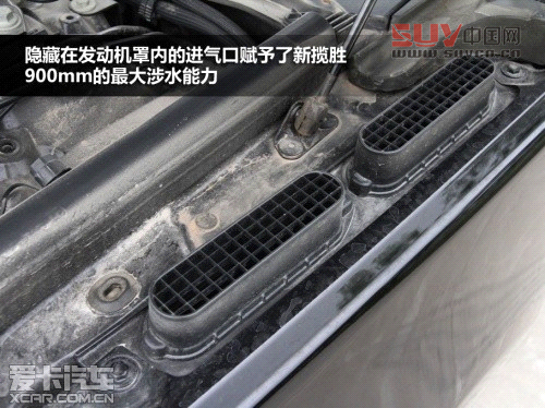 巧妙地隱藏在半殼形發(fā)動(dòng)機(jī)蓋內(nèi)的進(jìn)氣口賦予了新攬勝900mm的最大涉水能力,只要與車(chē)燈齊平或低于大燈高度的水面基本都可以從容面對(duì)。即便有水真的灌入發(fā)動(dòng)機(jī)艙,水流也會(huì)按照經(jīng)過(guò)特別設(shè)計(jì)的發(fā)動(dòng)機(jī)蓋從兩邊流出,進(jìn)一步降低發(fā)動(dòng)機(jī)因?yàn)檫M(jìn)水而損壞的幾率。所以面對(duì)暴雨和廣渠門(mén)什么的,攬勝的用戶(hù)可以一笑而過(guò)了。