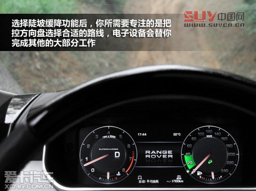上坡時(shí)除了對(duì)底盤(pán)的通過(guò)性是個(gè)考驗(yàn)以外,對(duì)動(dòng)力系統(tǒng)和低速扭矩也是個(gè)問(wèn)題,不過(guò)攬勝在這方面完成的也相當(dāng)出色。這臺(tái)5.0L V8發(fā)動(dòng)機(jī)能夠在2500rpm開(kāi)始就提供出超過(guò)600Nm的強(qiáng)大扭矩,在不需要任何聲嘶力竭的怒吼下輕點(diǎn)油門(mén)就可以完成大角度的攀爬動(dòng)作。同樣的,即使在前風(fēng)擋完全充滿天空的情況下踩下剎車(chē),車(chē)輛同樣能夠在這種姿態(tài)下保持靜止不動(dòng),松開(kāi)剎車(chē)踏板車(chē)輛也不會(huì)迅速下滑,你只需繼續(xù)輕輕踩下油門(mén)踏板就可以在陡坡半途完成攀爬,而不需要任何沖坡準(zhǔn)備。