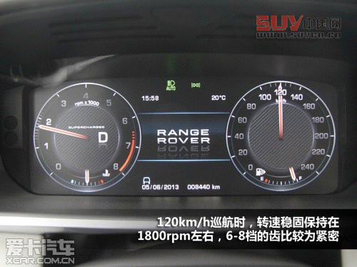 高速巡航時(shí)仍然能夠保持穩(wěn)健的步伐,而且感覺(jué)非常輕巧,并不像外表看起來(lái)那么笨重。6-8檔的齒比較為緊密,每次升檔之后降低的轉(zhuǎn)速基本保持在300-400rpm左右,不過(guò)這樣的調(diào)校仍然能夠讓路虎在高速時(shí)保持低轉(zhuǎn)速巡航,確保良好的巡航經(jīng)濟(jì)性。