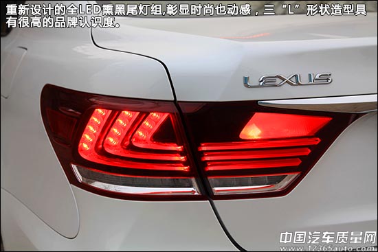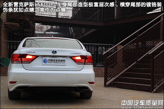 一條橫穿尾部的鍍鉻裝飾條搭配全新設計的尾燈使得該車尾部極具層次感。尾燈采用了全新設計的全LED燈組與前大燈相互呼應,熏黑的處理設計使得整體全新LS600hL更透著一些時尚動感。此外車身多處也加入了符合空氣動力學的空氣擾流片。