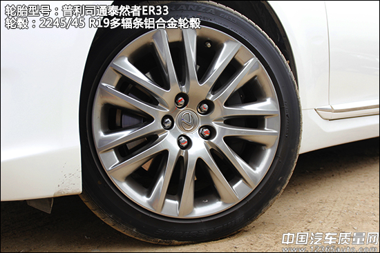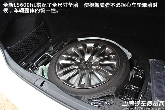 全新LS600hL選用的為245/45 R19多輻條鋁合金輪轂,并且搭配普利司通泰然者ER33輪胎,值得一提的是輪轂的設計采用了中空接口,將噪音導致相當于諧振器的空腔中,從而有效地疏導共振噪音,提高了靜謐性。而在備胎方面,全新LS600hL搭配了全尺寸備胎,使得駕駛者不必擔心車輪爆胎時候,車輛整體的統一性。