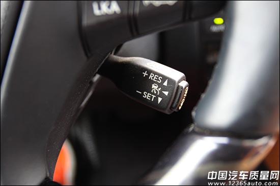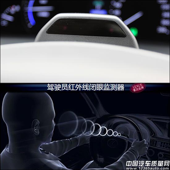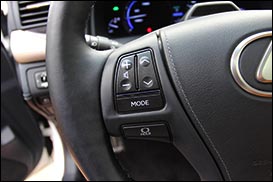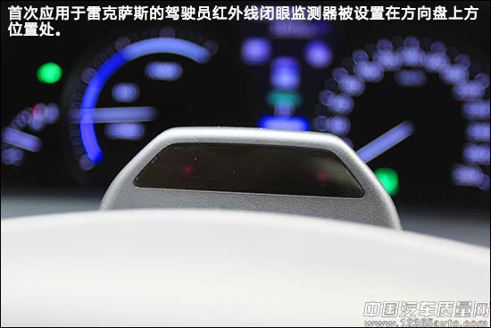 較大的三輻式方向盤全部采用真皮包裹搭配“Shimamoku”的烏木材質打造而成。不但看上去十分的高端奢華如而且摸上去手感也十分舒服。此外該方向盤還具備加熱功能。左右兩側的多功能按鍵也一目了然,左側的多功能區域主要為多媒體選擇及音量調節功能,右側為車道保持輔助系統、藍牙手機控制、儀表屏幕顯示選擇及語音功能控制按鍵區域,可以對導航等功能進行語音操作。而方向盤右下方則為ACC自適應雷達巡航控制系統擋鍵。與此同時在方向盤上方則設有駕駛員紅外線閉眼監測器,該功能為雷克薩斯首次應用。