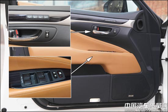 在駕駛員側車門拉手位置處上則設有安全帶高低調節按鍵以及電動座椅記憶功能按鍵,該按鍵可以儲存3個位置,免去上車后調節座椅位置的麻煩。而中控門鎖和車窗玻璃升降開關則安裝在車門板位置處。