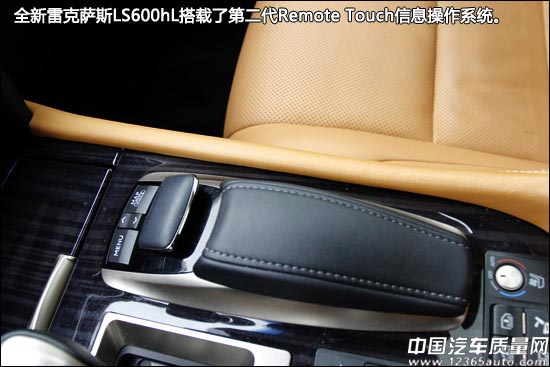 中控臺的造型延續了家族式的T字臺造型,合理的人性化布局配以高細致的做工,使得中控臺極具奢華與高端。一條空調出風口將上下兩部分一分為二。上部分為一個12.3英寸的LCD彩色液晶顯示屏,下部分則為中控面板區域。12.3英寸的LCD彩色液晶顯示屏搭載第二代Remote Touch信息操作系統可以單獨或分屏顯示空調系統功能選項、導航地圖、多媒體、DVD視頻及雷克薩斯開創的G-book智能副駕通信系統和倒車影響等功能。