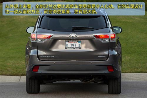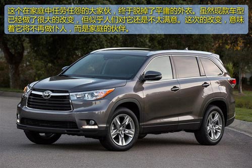 全新漢蘭達經過了重新的設計,令人對它刮目相看。新車擁有設計大膽的全新面貌、升級的懸掛、注重舒適性和便利性的內部配置等等。豐田想使全新漢蘭達在運動的駕駛感和流行的外觀上更加引人注目,就像它一直以來的使命——“家庭去哪里,它們就跟隨到哪里”,它們總是在迎合著家庭的喜好。