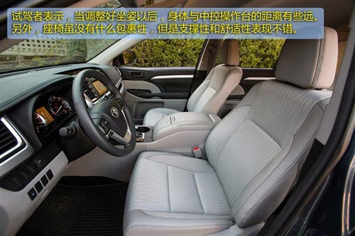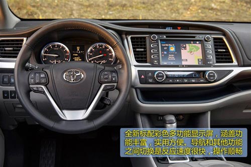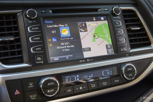 新車標配了全新的in-meter-cluster多功能顯示屏,還標配有豐田的Entune信息娛樂系統,高配車型將擁有更加豐富的功能。總而言之,這是一個很好的系統。導航菜單和圖形之間切換的延遲非常微小,比許多其他車型上的系統更好。在更高的配置里,Entune可以提供XM衛星和高清廣播,還有一個應用程序套件。另外還有JBL音響系統和導航等功能。對漢蘭達我最喜歡的新功能是語音控制功能。駕駛者的聲音可以通過揚聲器傳播,能夠及時地將消息傳達給坐在后排的孩子。