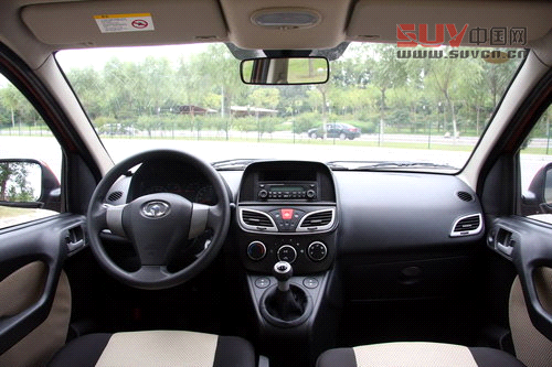 迷你SUV其座椅為靈感源自賽車的雙色座椅,座椅的中央為米色,兩側(cè)為黑色,擁有不錯的支撐效果。五速手動變速器的擋把放在了中控臺的最下方,這樣的布置方式一是便于駕駛者使用,二也節(jié)約了有限的車內(nèi)平面空間。
