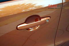 五速手動變速器的擋把頭形如高爾夫球,細(xì)節(jié)精致,握感不錯,雖然有些生澀的感覺,但相信出了磨合期之后的感覺會比較不錯。而玻璃升降器很特別的設(shè)計到了換擋桿邊上,操作還算順手。