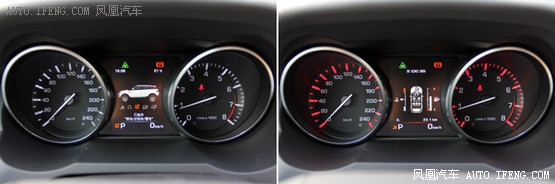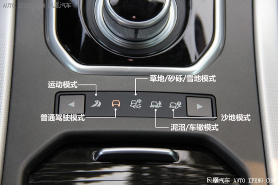 地形反饋系統在極光上改為用按鍵切換駕駛模式,或許這也是為了那個炫目的升降式換擋旋鈕所作出的讓步。中控臺上的視覺核心的轉變說明了這款車功能服從形式的主題。全地形反饋系統提供5個選項,包括運動,普通,草地/沙礫/冰雪,車轍/泥濘和沙地。比攬勝少了巖石攀爬模式,但攬勝運動版一樣擁有動態駕駛模式,這讓它的定位和產品性格十分明確--在保留一部分越野能力的同時,重點凸顯公路駕駛樂趣。