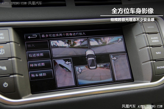 攬勝極光同時還配有360°全方位車身影像系統,雖然身材嬌小的極光并不像大攬勝那樣依賴于這些視覺輔助設備,但對其狹窄的后方視野還是能起到很大的補充。另外考慮到極光的市場定位中女性用戶比例不低,全景監控設備在泊車的時候也能幫上大忙。