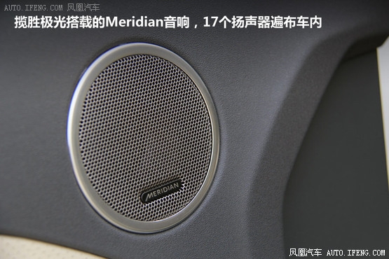 2014年款攬勝極光搭載的Meridian音響,最高配置擁有高達825W的最大功率,遍布車廂的17個揚聲器帶來的完美的環繞立體聲效果,讓每一位駕乘者都能體會到有如在音樂廳般的感覺。