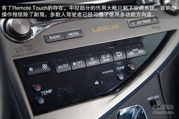 雷克薩斯RX的內飾設計依然是傾向駕駛者一側的不對稱造型,中控臺設計簡約大方錯落有致。有了Remote Touch的存在,中控部分的作用大概只剩下空調系統,音響的操作相信除了副駕,多數人駕駛者已經習慣了多功能方向盤。G-BOOK系統的應急按鍵設置在車頂,并設有一道誤碰保護,十分細致。
