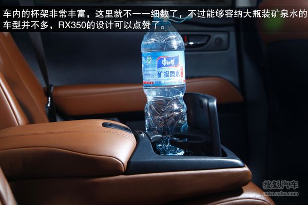 由于拍攝選址距離市區較遠,我們在路上準備了大一號也就是1L裝的礦泉水瓶。這對于多數車型來說,杯架已經完全被擊敗了,然而在雷克薩斯上面,無論是前排中間,車門或是后排中間,都能夠穩妥的放進去。它的儲物空間已經不止是豐富,而且做到了高度兼容。