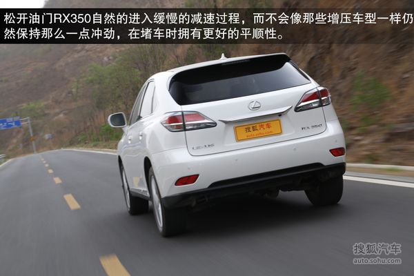多數情況下城市中的車速變化很大,增壓技術帶來的渦輪遲滯只能弱化不能根除,這點在堵車時尤為明顯。而自然吸氣則不會有這樣的不快,無論何種狀況下都能夠提供源源不斷的動力輸出。抬開油門踏板,RX會緩慢的減速,而非那些增壓車型一樣在渦輪的作用下再保持一腳竄勁。