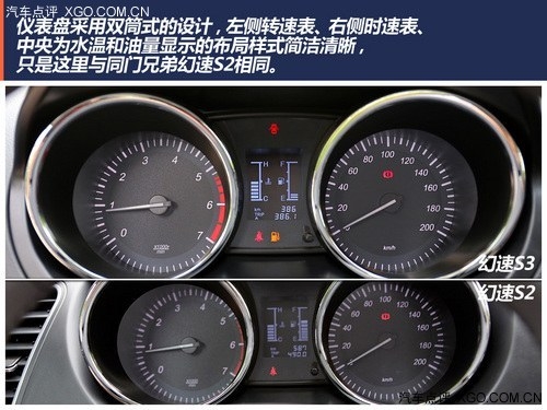 儀表盤采用雙筒式的設(shè)計(jì),左側(cè)轉(zhuǎn)速表、右側(cè)時(shí)速表、中央為水溫和油量顯示的布局樣式簡潔清晰,只是這里與同門兄弟幻速S2相同。