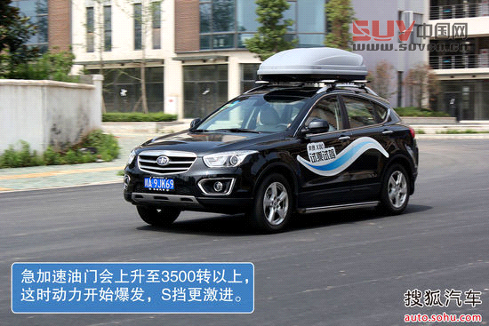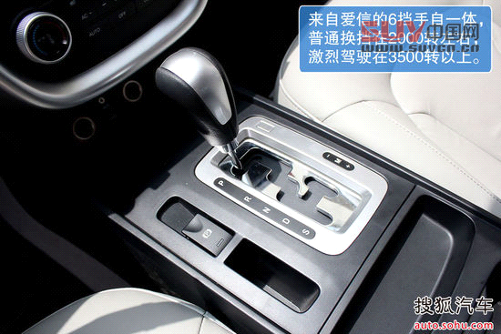 愛信的變速器和這款發動機配合得很好,當你深踩油門告訴它要加速時,發送機轉速迅速上升,到3500轉左右時,擋位開始變換。加速越急,轉數越高。若要換到S擋,整車駕駛風格更激進。