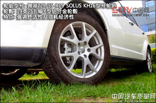 酷威的輪胎使用的是錦湖225/55 R19 SOLUS KH16型號輪胎,這款輪胎的最大特點不是運動性能、不是越野性能,而是強調舒適性及油耗經濟性。從這一點來看,酷威作為一款城市跨界SUV,可以說是名副其實。與之相匹配的是19英寸五幅Y型鋁合金輪轂,雖然談不上多么動感,但依然給整車增添了一份年輕活力。