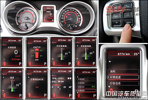 儀表的設計也同樣很具時尚感,顯得年輕有活力。雙炮筒式的儀表設計,配以銀色的寬大邊線,符合年輕人的審美。而在紅色背景燈光的映襯下,令人多了一份駕駛的沖動。儀表臺上的顯示屏,同樣為紅色背景,但不要以為它是單色屏幕,而是采用3.5英寸的彩色真彩顯示屏,色彩艷麗,顯示清晰度高。通過方向盤左側的箭頭、back按鍵可以在顯示屏上看到車速、油耗、胎壓、機油溫度、變速箱油溫度、防凍液溫度等信息,功能非常之強大!