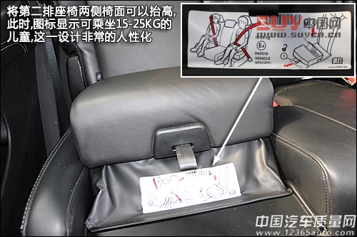 2890mm的大軸距提供了更為充裕的乘坐空間,第二排擠第三排座椅也得到了完美的體現。第二排座椅采用了手動調節功能,可能有人會認為不夠完美,但手動調節的便捷程度要比電動更為完美,扳動手柄的瞬間,就可以實現第二排座椅椅背放倒、座椅前移,而快捷扳手可以單手實現座椅的整體折疊,女士及初中生都可以輕松完成。第二排座椅除了可以4/6比例放倒以外,還帶有連百萬級以上豪車都自愧不融的人性化設計,這就是自帶的兒童座椅!對于有孩子的家庭來說,出游時攜帶兒童座椅即占用車內空間,而且又不便于安裝,對于7座車輛來說還妨礙第三排成員上下車。而自帶的兒童座椅,實際上是將第二排座椅左右兩側的椅面抬高,可以乘坐15-25KG的兒童。