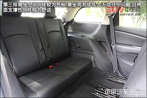 第三排座椅為兩人座,雖然是在最后一排,但乘坐空間依然夠用,乘坐兩名1.7-1.75米左右的成年人沒有任何問題,頭部及腿部空間依然不會顯得狹小。對于這一點來說,酷威可以稱之為不折不扣的7座車,相比其它“偽7座”車來說適用性更強。座椅椅背還可以實現兩級調節,可以讓乘坐者選擇更為舒適的乘坐姿勢。