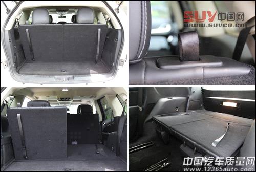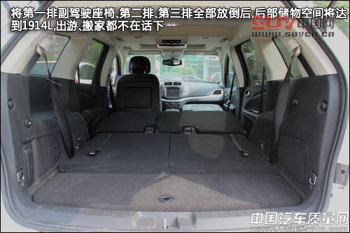 滿足了車內如此之多的功能,乘坐7人后在后備箱儲物空間上就略顯得局促了,可謂有得必有失。考慮到以上問題,將后備箱地板打開,在下部還帶有儲物格,可以容納一些不常用到的隨車物品,以節省空間。如果將第三排座椅放倒,儲物空間瞬間得到擴充,燒烤架、帳篷等物品可輕松放下。而將副駕駛座和第二、三排座椅放倒,即刻變出1914升的超大空間,相當于普通轎車后備箱容量的近4倍,足以滿足旅行甚至搬家的置物需求。