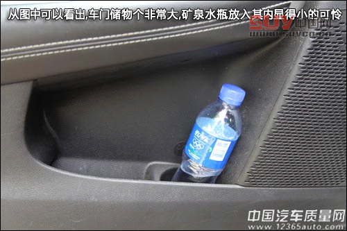 說完了乘坐空間,讓我們一同領略一下儲物空間方面的精彩之處。首先前車門上的儲物空間就很實用,儲物空間較大且開口便于放取較大物品。在中控臺的下方,還帶有一個寬大的儲物格,錢包、手機、鑰匙包等能想到的物品幾乎都可以容納下。其后方帶有兩個水杯支架,酷威內部的儲物空間都是大號的,就連水杯架也不例外,大號水杯放入其中一點兒問題也沒有。