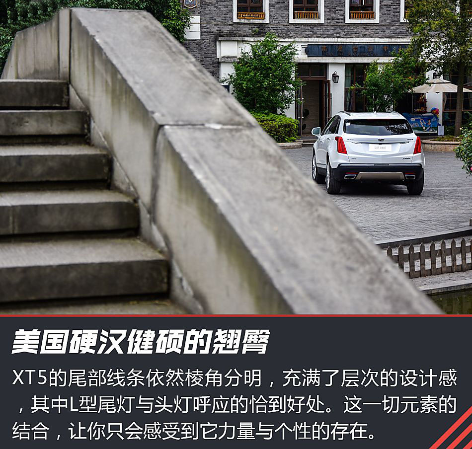 來到XT5的車尾部,它整體的設(shè)計感層次分明,棱角雕塑的線條感看上去力量十足,這與家族式的“鉆石切割”style更為契合。