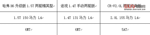哈弗H6 升級版同樣有四驅可選。從動力總成參數上看,三家差別不是很大。哈弗H6升級版與途觀均是6檔手動,而CR-V是5檔自動,雖然少一個檔位,但是自動檔彌補了這一缺憾。不過對于講求駕駛樂趣的車友來說,手動檔仍然是理想選擇。