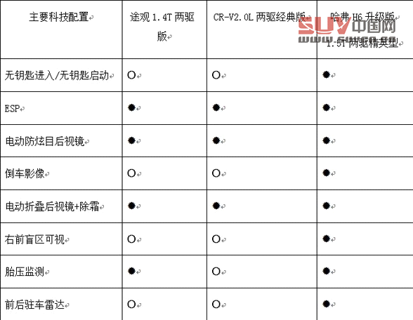 科技配置方面,哈弗H6升級版的優勢非常明顯。無鑰匙進入、無鑰匙啟動、倒車影像、駐車雷達、右前盲區可視功能都是其他二者所沒有的。而上述功能對駕駛新手尤其是廣大女性車主來說可謂非常實用。