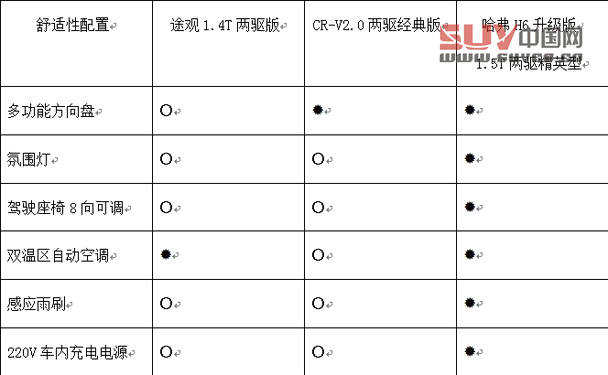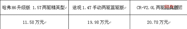 車價往往是購車客戶最為關心的方面,從售價看來,哈弗H6升級版與途觀、CR-V似乎構不成實質性的競爭,因為裸車價格相差近8萬元。但是從車內空間,動力總成等來看又差別不大,從車型配置來看哈弗H6升級版較豐富,優勢明顯。
