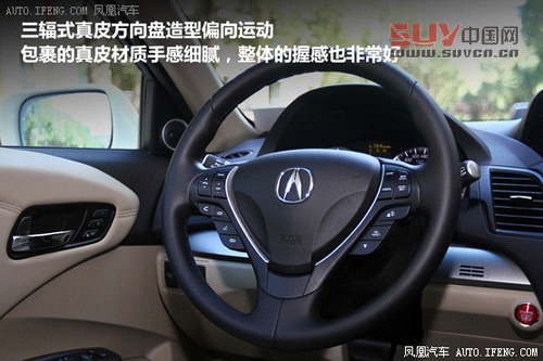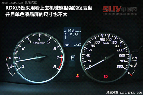 三輻式真皮方向盤造型偏向運(yùn)動(dòng),包裹的真皮材質(zhì)手感細(xì)膩,整體的握感也非常好,方向盤上集成了音響、行車電腦、定速巡航等功能控制,豐富且方便,連3.5L車型配備的換擋撥片也沒有落下。現(xiàn)在豪華品牌的儀表盤設(shè)計(jì)都像一場(chǎng)戰(zhàn)爭(zhēng),比著炫酷、功能豐富,而RDX仍然采用看上去機(jī)械感很強(qiáng)的儀表盤,并且單色液晶屏的尺寸也不大,雖然簡(jiǎn)潔實(shí)用的風(fēng)格我們很喜歡,但確實(shí)應(yīng)該進(jìn)行升級(jí)了。