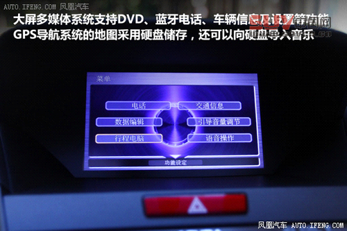 大屏多媒體系統(tǒng)的控制全部進(jìn)行了中文化,這也是謳歌和本田在人性化方面做出的努力。多媒體系統(tǒng)具備全面的音頻播放功能,同時(shí)支持DVD、藍(lán)牙電話、車輛信息及設(shè)置等功能,同時(shí)還帶有采用硬盤儲(chǔ)存的GPS導(dǎo)航系統(tǒng)。