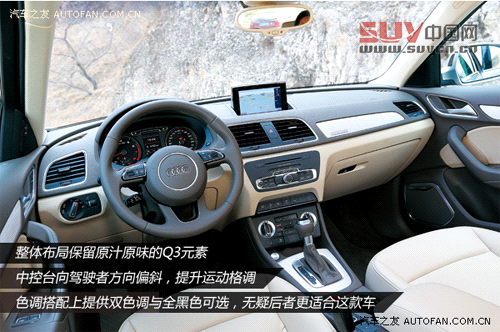 因為Quattro早已成為商標,它不代表托森差速器和機械傳動機構,所以沒比較糾結奧迪在Q3上做文字游戲。固然,這套Q3的四驅并不是與Q5和Q7一樣的托森版,而只是途觀版,中央差速器采用多片離合器形式,這對于一款基于前驅橫置發動機的城市SUV無可厚非,不要奢望它的越野性能,只是四驅結構能讓車輛在高速穩定性上有所保證。如果你說這種結構式妥協我并不同意,首先奧迪在技術上很強勢,不會因為成本或者消費習慣而妥協,其次,橫置發動機對于托森來說并不匹配,又不要求太過分的越野性能,這樣的結構保證了通過性又能減輕重量,何樂而不為,還是那句話,它是Q3,不是越野車。