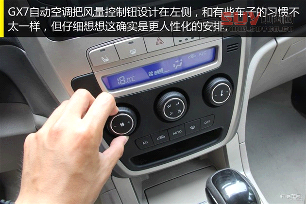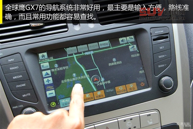 小結:外觀內飾設計都給人規整的感覺,配置上讓人最滿意的就是導航,非常好用,主要體現在輸入方便,路程指引準確。雖然這應該是導航的兩個基本標準,但確實有很多車型沒有做好。全球鷹GX7的自動大燈也很方便,尤其頻繁進出隧道的時候省了司機不少事。另外車輛還配有自動空調,制冷效果還行,風量開大時出風噪音比較明顯。