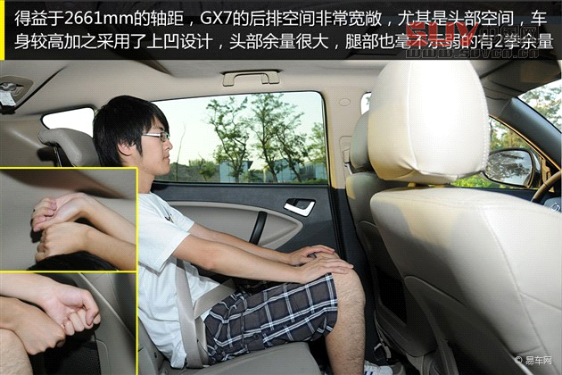 小結:雖然2661mm的軸距在同級車中并不出眾,但內部結構的設計使GX7擁有不錯的空間表現。后排頭部和腿部空間都很充裕,地板平整也給后排乘客更好的舒適度。后備廂官方沒有公布具體容積數據,但它在同級車中并不示弱,后排座椅不僅支持4/6分體放倒,右側的座椅還可獨立折疊,雖然沒什么實際用處吧。