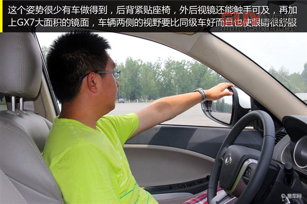 小結:GX7的視野跟同級車相比,兩側大大的后視鏡是明顯的優勢,不僅離眼睛距離更近,而且可視范圍確實很大,比雙曲率的做法更讓眼睛舒服。但車頭盲區就沒什么優勢了,比瑞虎的盲區要大出近半米。