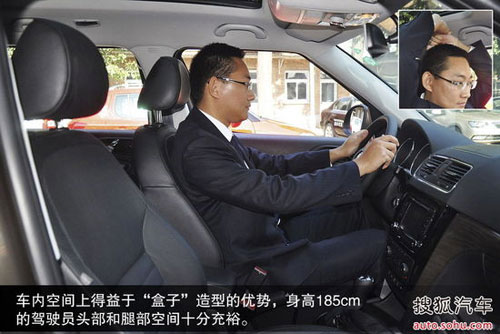 真皮座椅具有很好的支撐性和舒適型,主駕還提供了8向電動調節但是沒有提供記憶功能。車內空間上得益于“盒子”造型的優勢,身高185cm的駕駛員頭部和腿部空間十分充裕。中控臺上方的儲物格空間一般,放置一些手機和票據還是非常合適的。內部的防滑墊,有效的防止內部的物品亂跑。中央扶手箱由于造型并不規整,造成內部可用空間并不大。