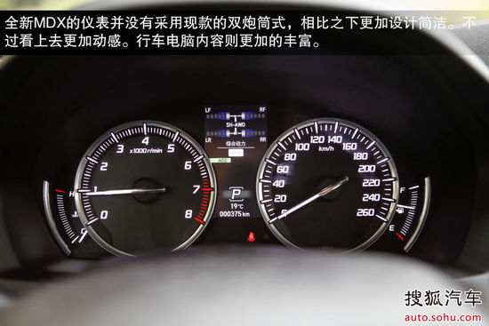 相比于現款謳歌MDX的內飾來說,全新謳歌MDX的內飾可謂是翻天覆地的變化。在整體的"T"字型的傳統布局不變的基礎上,全新謳歌MDX的中控設計相比現款來說更為立體,層次更為分明。上深下淺的顏色運用以木紋裝飾,相比老款更具競爭力。全新MDX的儀表并沒有采用現款的雙炮筒式,相比之下更加設計簡潔。不過看上去更加動感。行車電腦內容則更加的豐富。