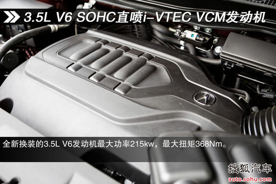動力方面,全新MDX換裝了3.5L V6發動機,最大功率215kw,最大扭矩可達到368Nm。與發動機搭配使用的是六速自動變速器。全新謳歌MDX在沿用了SH-AWD(超級四輪驅動自由控制系統)的基礎上,增加了AHA(敏捷輔助系統),為消費者帶來相對更多靈敏的公路操控感受。