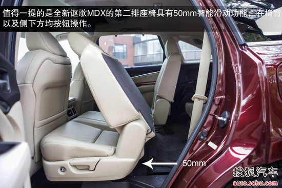 全新謳歌MDX全系采用了帶腰部支撐功能的8向可調節真皮座椅,座椅采用了站皮與打孔兩種材質,軟硬適中。